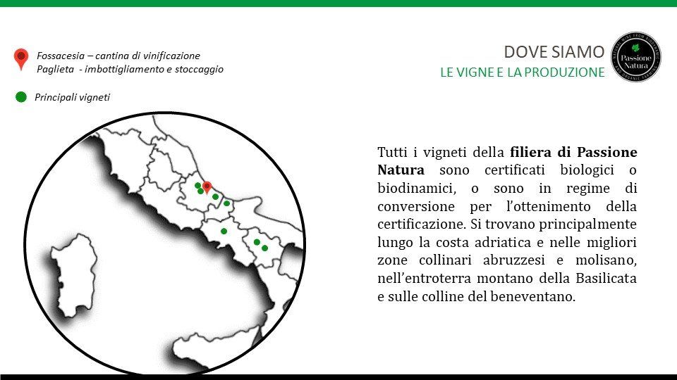 Il marchio di Passione Natura garantisce che il prodotto è interamente realizzato dalla nostra filiera produttiva completamente controllata e ogni singola bottiglia è riconducibile al vigneto di origine.